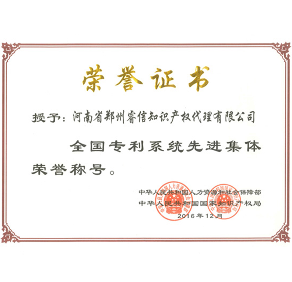 公司榮獲河南省知識(shí)產(chǎn)權(quán)系統(tǒng)先進(jìn)集體稱(chēng)號(hào)。